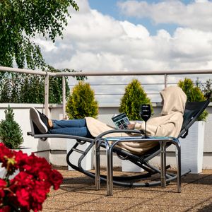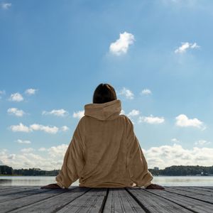 Oversize’owy krój gwarantuje pełną swobodę ruchów, a duża kieszeń pozwoli schować dłonie, telefon czy pilot. Kaptur daje dodatkowe ciepło i chroni przed zimnem — super opcja na balkon, ogród czy camping.
