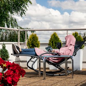 Oversize’owy krój gwarantuje pełną swobodę ruchów, a duża kieszeń pozwoli schować dłonie, telefon czy pilot. Kaptur daje dodatkowe ciepło i chroni przed zimnem — super opcja na balkon, ogród czy camping.